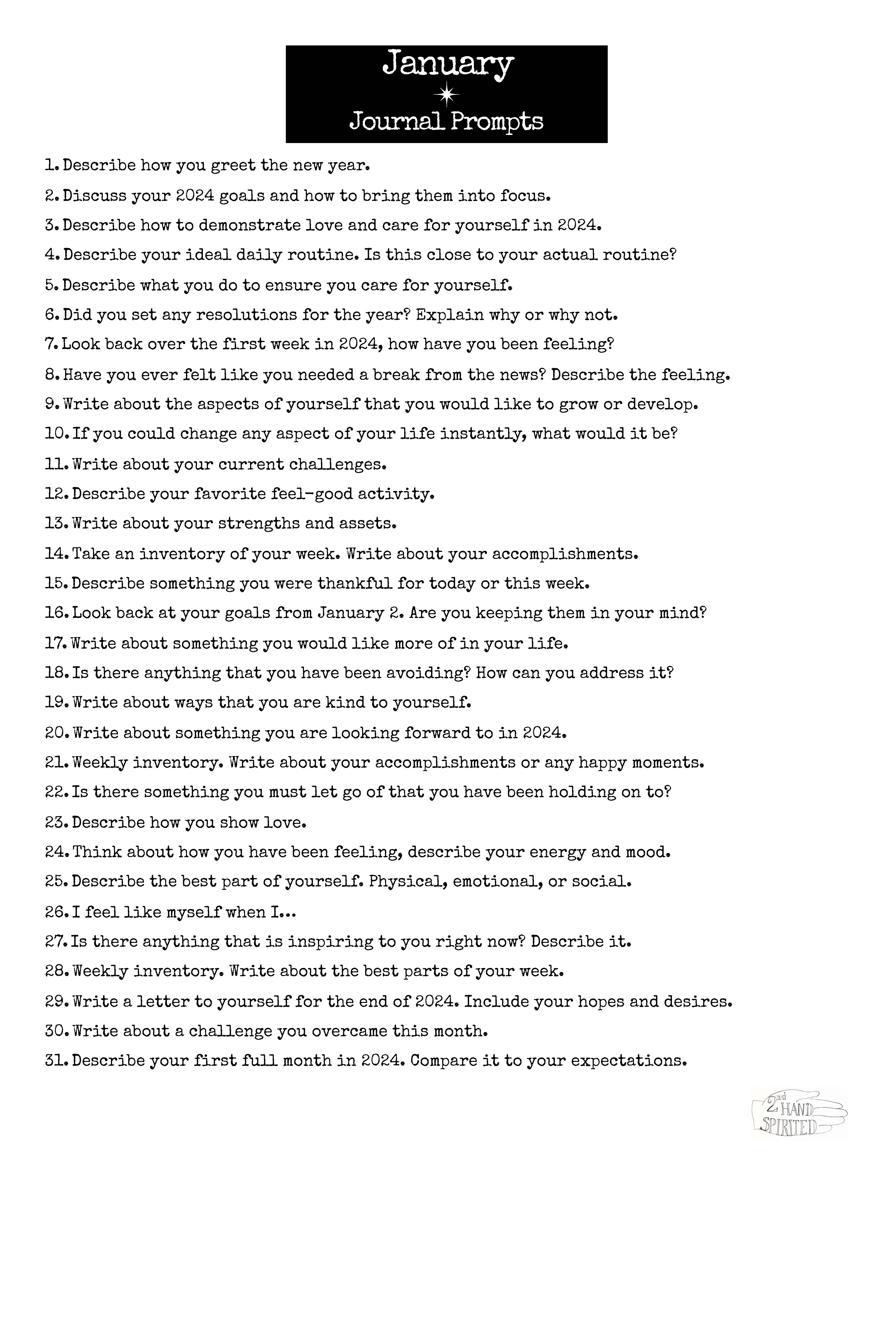 There are times in life that feel otherworldly. Almost unreal. In my opinion, this includes the time between the holidays and the new year. This year I wanted to journal through the time between. Join me for these daily prompts if you wish. I look forward to discovering my intentions for 2024 during the time between. Follow me on Instagram https://www.instagram.com/2ndhandspirited/ for the daily prompts, also available below.