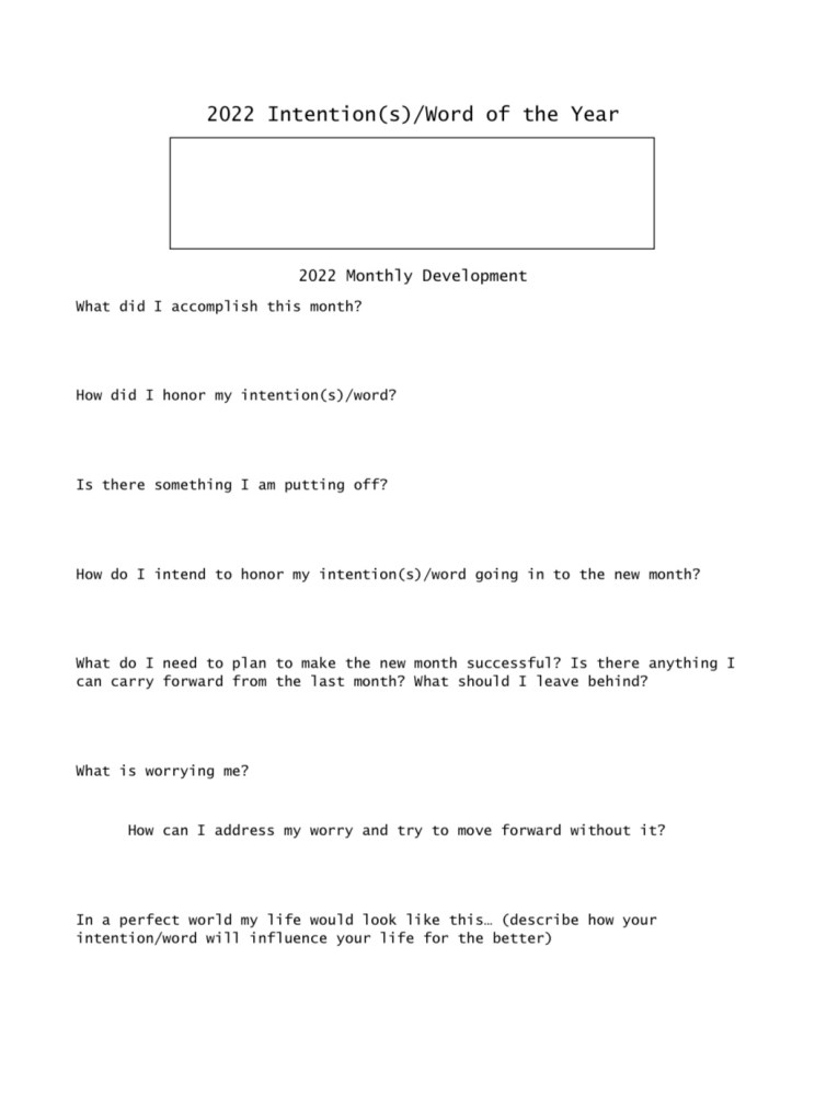 I am trying out a monthly workbook page or check-in. A few years ago, Café Analog created a monthly check in, and I really felt like it was helpful for keeping my word in mind. Though this workbook page is not quite as extensive, I am hoping it will keep me motivated to keep my intentions and word in focus!