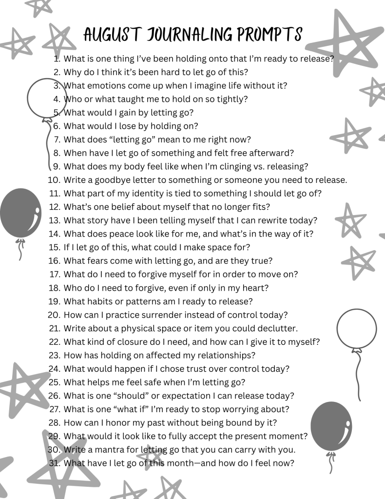 Featured August Journaling Prompts On August 1, 2025September 1, 2025 By 2ndhandspiritedIn journal, journal promptsLeave a comment August 2025 PromptsDownload